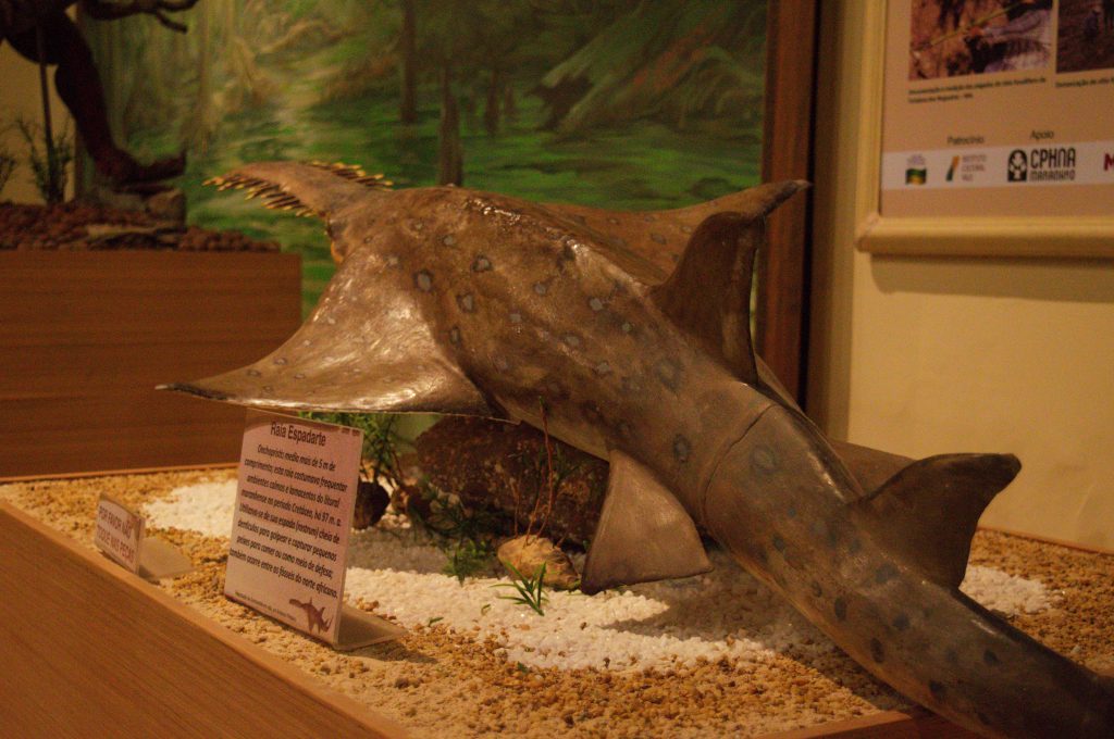 Exposição da raia-espada (Pristis), espécie que alcançava cerca de 5 metros de comprimento e habitava ambientes calmos e lamacentos. Por Laryssa Aragão