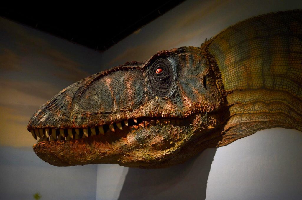 Reconstituição de um Tyrannosaurus rex, dinossauro carnívoro que viveu há cerca de 66 milhões de anos, conhecido pelo grande tamanho da cabeça, dentes afiados e mordida extremamente forte. Por Kaylane Rodrigues