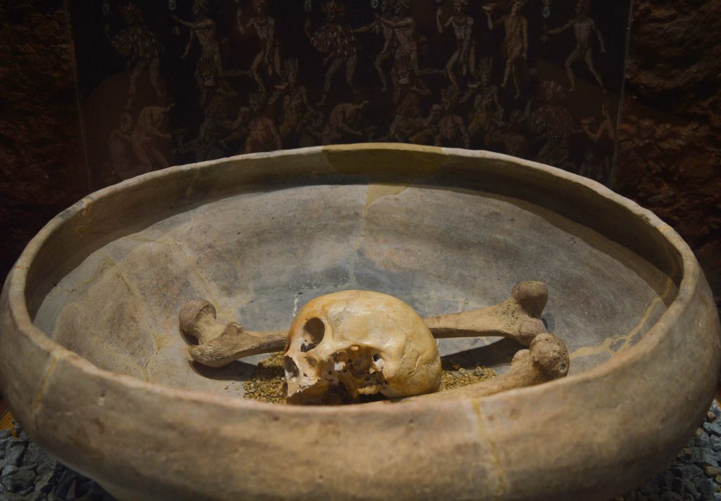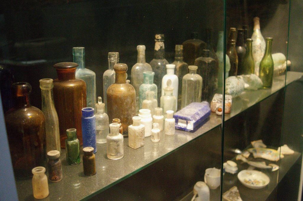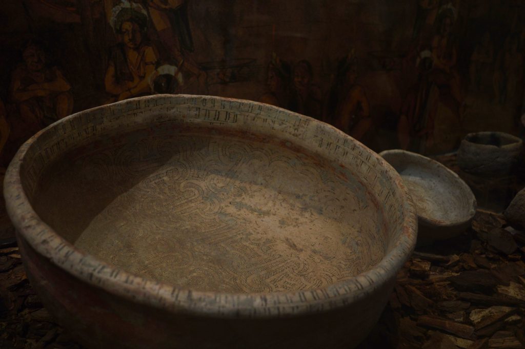 Urna funerária de cerâmica contendo ossos humanos, geralmente associada a práticas ritualísticas e funerárias de grupos Proto-Tupi que habitaram parte do litoral maranhense e regiões interioranas, encontrada no município de Lago da Pedra. Por Kaylane Rodrigues.Cerâmica de uso ritualístico decorada internamente, característica cultural pertencente à tradição Tupiguarani, datada de 1250 AD (Anno Domini), encontrada no Alto do Calhau durante uma invasão. Por Kaylane Rodrigues.Exposição de garrafas e frascos provenientes da Antiguidade, representativos de práticas cotidianas e usos diversos ao longo da história. Por Laryssa Aragão