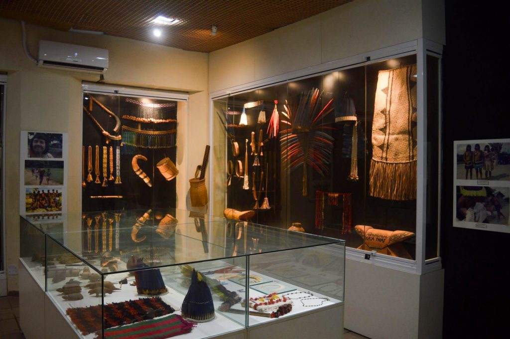 Sala expositiva com artigos indígenas pertencentes a diferentes povos residentes no estado do Maranhão. Por Kaylane Rodrigues