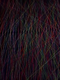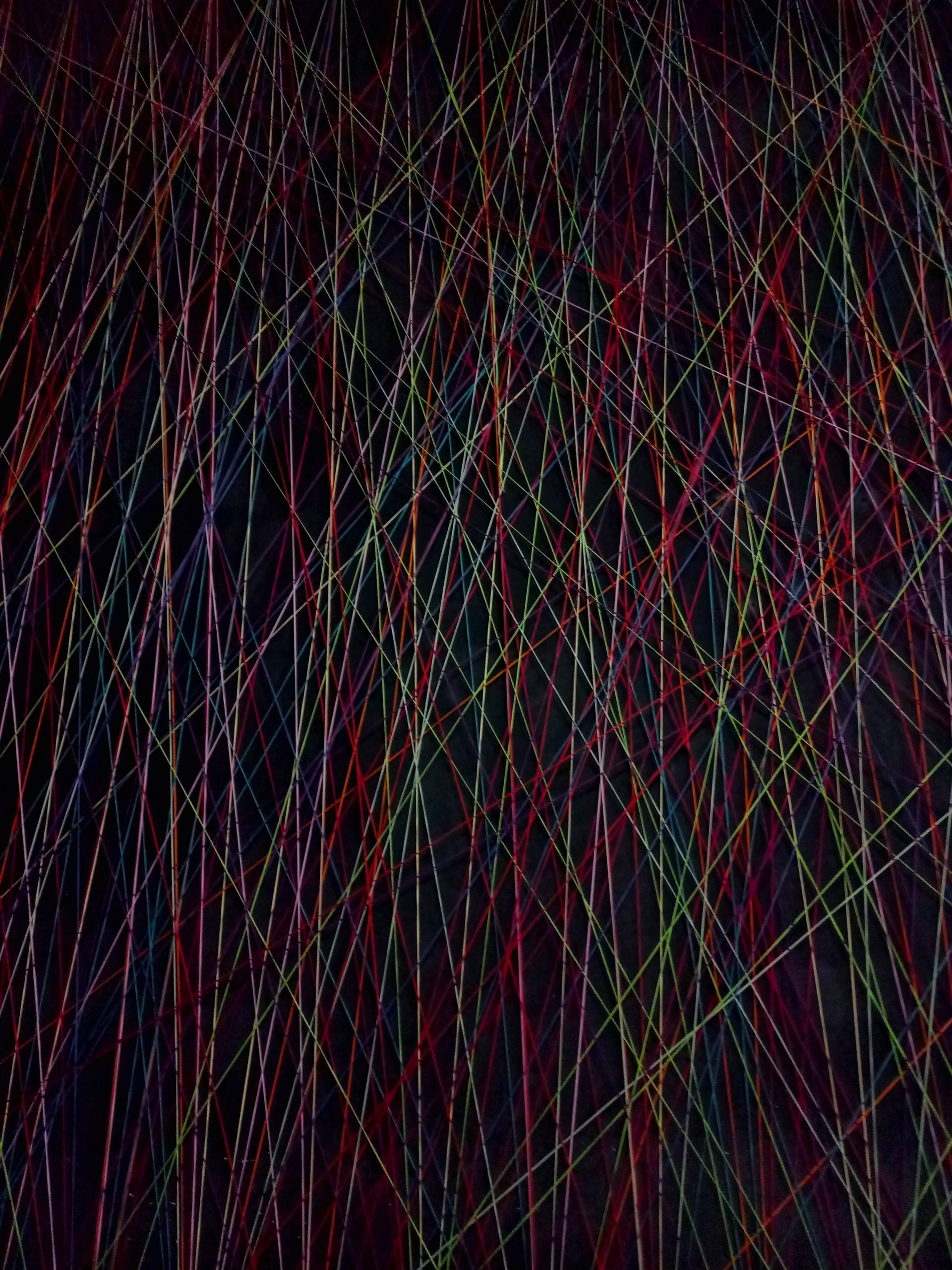 Linhas coloridas se cruzando sob uma superfície preta